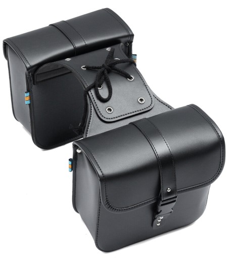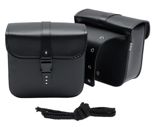 SAKWY TORBY BOCZNE SKÓRZANE NA MOTOR MOTOCYKLOWE POJEMNE CZARNE x2