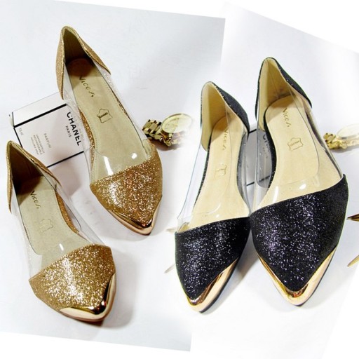 BALERINKI ELEGANCKIE POŁYSKUJĄCE SKÓRA ZŁOTE 37