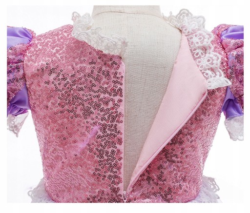 Kostium Roszpunki jest odpowiedni dla dziewczynek w wieku 3-11 lat,