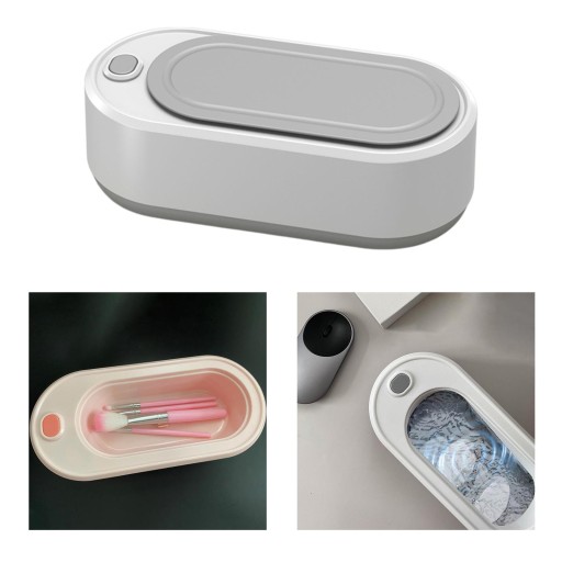 Ultradźwiękowa maszyna do czyszczenia biżuterii do pierścieni pędzli do makijażu, ładowana przez USB, szara