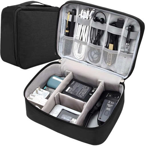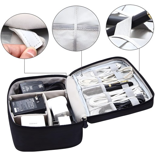 - PORZĄDEK I ORGANIZACJA - organizer zapewnia przestrzeń na przechowywanie wszystkich twoich kabli i ładowarek w jednym miejscu, zapobiegając plątaniu się i gubieniu akcesoriów.
