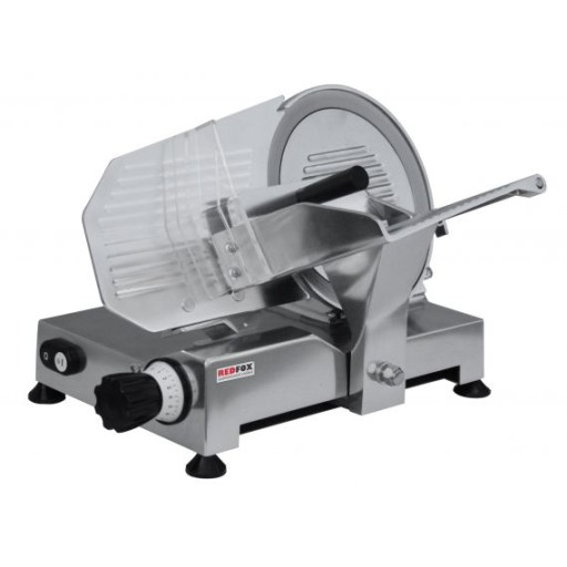mamy do sprzedania krajalnicę gastronomiczną RedFox GS-250. Urządzenie było używane, posiada normalne ślady użytkowania. Pod względem technicznym krajalnica jest sprawna.