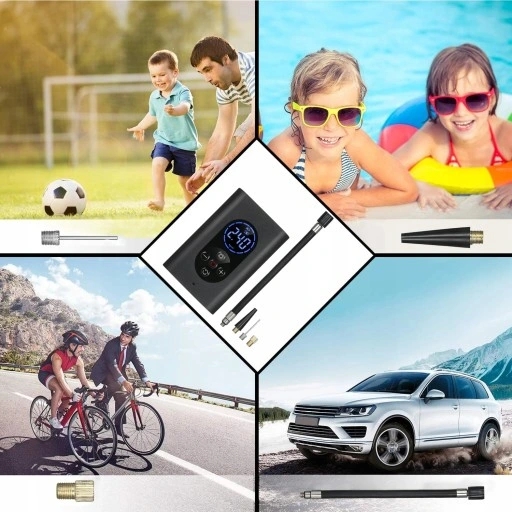 -ręczna sprężarka powietrza jest wyposażona w 4 adaptery dysz doskonale zaprojektowane do różnych przedmiotów do pompowania, takich jak opony rowerowe, opony samochodowe do użytku domowego, opony motocyklowe, elektryczne opony rowerowe, piłki, koła do pływania, nadmuchiwane zabawki i inne pontony .