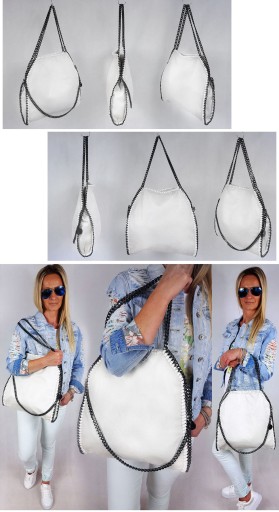 Wyjątkowa damska torba z łańcuchami, doskonała do ręki jak i na ramię. Torebka w przystępnej cenie, bardzo dobrej jakości !!!