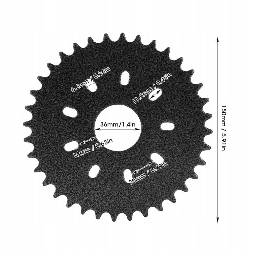Funkcja:1. Montaż: tylna zębatka 36 T, odpowiednia do łańcucha 415, pasuje do 49cc 50cc 60cc 80cc z napędem na rower z napędem.2. Stal wysokowęglowa: Wykonana ze stali wysokowęglowej, z obróbką cieplną, zwiększa odporność na zużycie i wytrzymałość.3. Zaleta: to koło zębate może zapewnić maksymalną transmisję mocy, zapewnia lepszą wydajność transmisji.4. Łatwa instalacja: można go łatwo i szybko zamontować, nie wymaga skomplikowanych narzędzi, jest wygodny w użyciu.5. Doskonała wymiana: oryginalny standard, bezpośredni zamiennik starego lub uszkodzonego tylnego koła łańcuchowego.