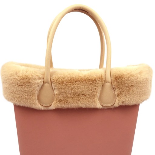 Wyjmowany dodatek do torby wykonany ze sztucznego futra królika rex, miękkiego w dotyku.