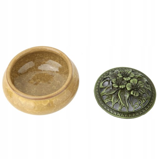 Ceramiczna kadzielnica ma pustą pokrywę, która zapewnia wystarczającą ilość tlenu do spalania kadzidła, może pomieścić 4 godziny kadzidła na raz.