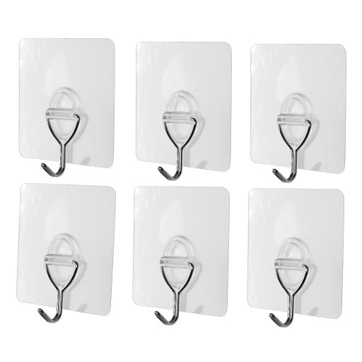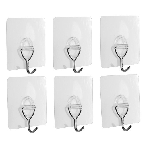 Bezśladowy Haczyk Ścienny Samoprzylepny Wieszak Na Ubrania 7x7cm Przezroczysty 6 sztuk