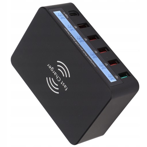 Port wyjściowy: wyjście 4xUSB, wyjście 1xQC3.0, wyjście 1 x Type-C, 1 x QI (ładowanie bezprzewodowe)