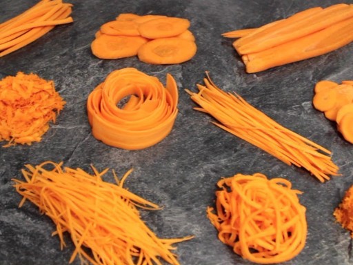 ✅ Kroi warzywa, owoce, jajka, sery i wiele innych produktów spożywczych w kostkę, paski, słupki, talarki.