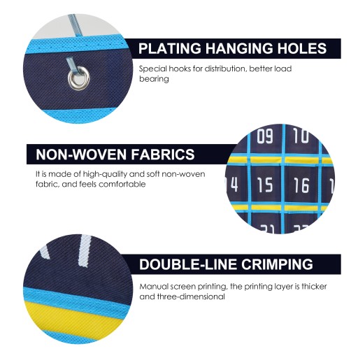 Jest to torba do przechowywania telefonu komórkowego, wykonana z wysokiej jakości tkaniny, z wieloma kieszeniami, każda z kieszeni jest zakodowana numerem. W zestawie 4 haczyki, łatwe do zamontowania na desce, biurku, szafie lub nad drzwiami. Nadaje się do użytku w klasie.