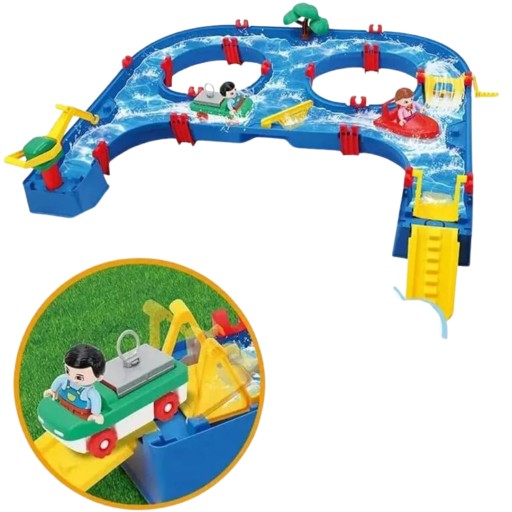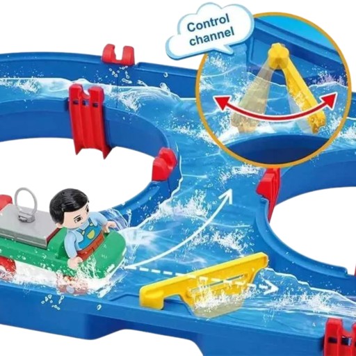 Park Wodny to gwarancja wielu godzin zabawy. Wystarczy wypełnić tor wodą i gotowe! Zabawa polega na umieszczeniu łódek na torze z wodą i sterowanie nimi za pomocą dostępnych dodatków takich jak: żuraw, śluza, łódki oraz korba ręczna. W trakcie zabawy dzieci mają realny wpływ na bieg wody i kierunek przepływu łódek!