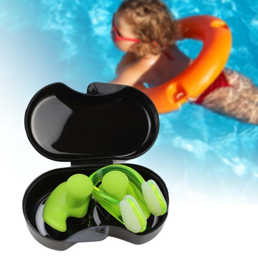 Zestaw zatyczek do uszu i klipsów do nosa do pływania Ucho treningowe dla dorosłych, zielone