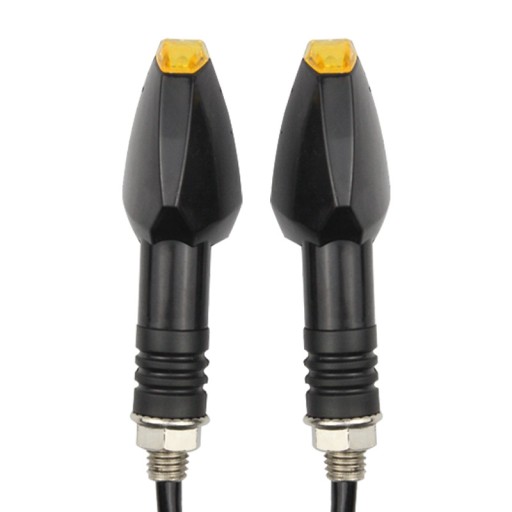 Kierunkowskazy mocowane na śrubę M10, z zarobionymi końcówkami przewodów.