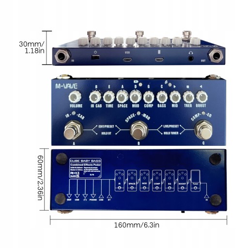 [Wielofunkcyjny pedał efektów] 8 grup klasycznego IR, 3-segmentowy regulator EQ, 2 efekty modulacji (chorus, tremolo), tuner/kompresor/delay/reverb.