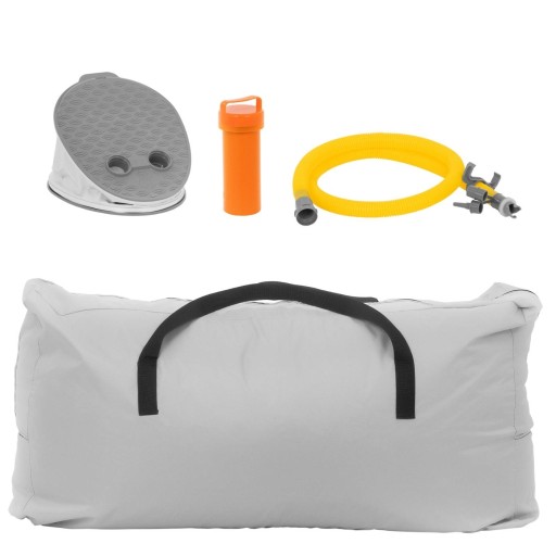 - Akcesoria - 2 wiosła, pompka, zestaw naprawczy, smycz, 2 liny zabezpieczające, zawór spustowy, 2 aluminiowe siedziska, torba transportowa