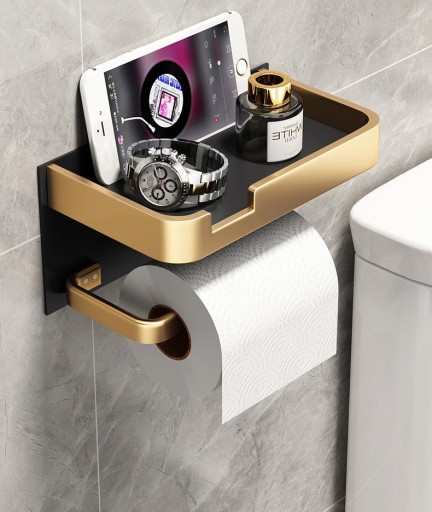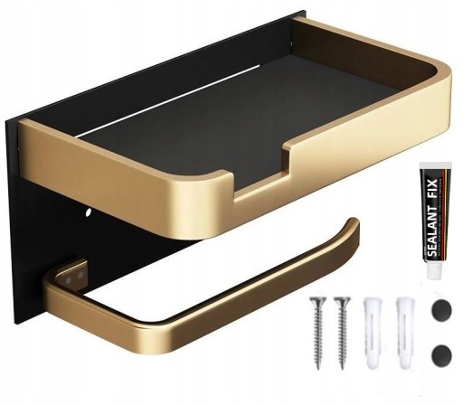 UCHWYT ŚCIENNY NA PAPIER TOALETOWY Z PÓŁKĄ LOFT