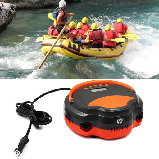 - Wyposażony w złącze samochodowe 12 V DC i sześć różnych dysz, odpowiednich do różnych nadmuchiwanych produktów, takich jak łóżka dmuchane, baseny, namioty, kajaki, piłki do jogi itp.