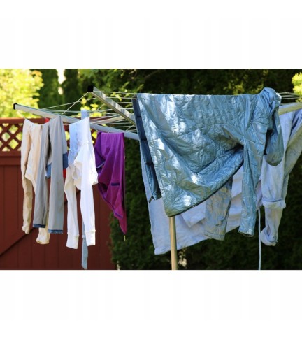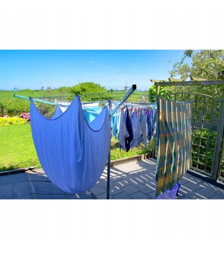 - ZEWNĘTRZNA OBROTOWA SUSZARKA NA PRANIE - pranie suszone na zewnątrz to nie tylko piękny zapach, ale i krótki czas suszenia. Suszarka ogrodowa doskonale sprawdza się zarówno w przypadku dużego prania, jak i małego. Szeroki rozstaw linek, na których powieszone będzie pranie sprawia, że schnie ono szybciej. Dzięki swojej konstrukcji i systemom wspomagającym, jest idealnym rozwiązaniem dla każdego gospodarstwa domowego. Suszarka obraca się swobodnie, co umożliwia szybkie i wygodne wieszanie prania.