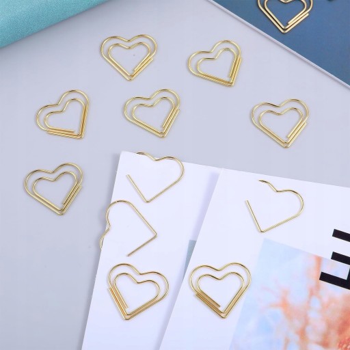 100x ZŁOTE SPINACZE BIUROWE W KSZTAŁCIE SERCA LIST WALENTYNKOWY WESELE ŚLUB