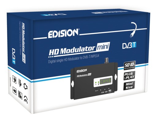Sygnał wejściowy: HDMI IN / Sygnał wyjściowy: Cyfrowa naziemna DVB-T/MPEG4, VHF (kanały 5-12) i UHF (kanały 21-69), dystrybucja przez kabel koncentryczny, obsługa wideo do Full-HD 1080p przy 30 klatkach na sekundę; Oszczędzająca miejsce instalacja przy bardzo kompaktowych rozmiarach, instalacja modulatora jest możliwa nawet przy minimalnej przestrzeni