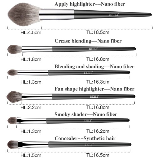 - Elegancki design: Rączki wykonane z naturalnego drewna, pokryte czarną matową powłoką, w połączeniu z aliuminiowymi skuwkami, nadają pędzlom elegancki wygląd, który doskonale prezentuje się na toaletce.