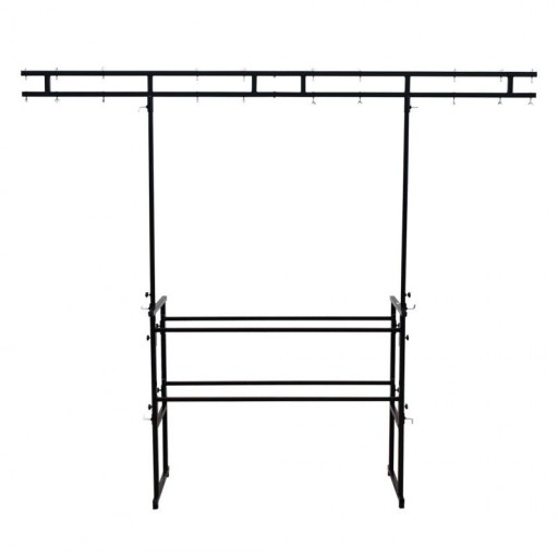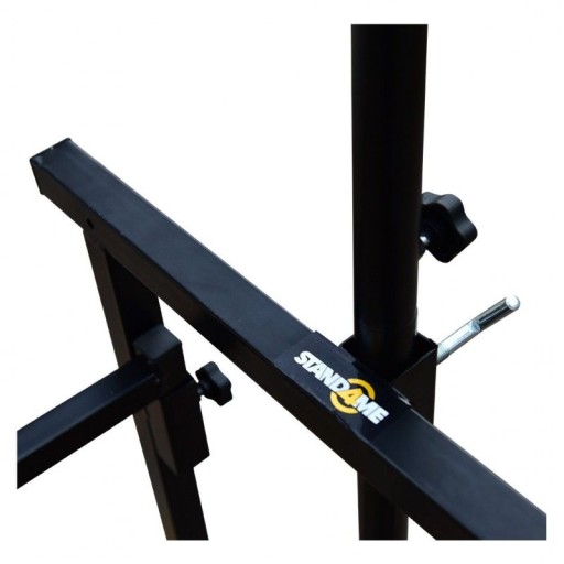 STAND4ME DJ120 DUO to wysokiej jakości uniwersalny, 4-stopowy statyw DJ, będący doskonałym rozwiązaniem dla mobilnych DJ-ów. Cała konstrukcja ma szerokość 1,2 m i jest wystarczająco wytrzymała, żeby utrzymać większość mobilnych urządzeń estradowych. Stelaż wyposażony został w dwie półki. Górna zaprojektowana została z myślą o konsoletach i stołach mikserskich. Dolna idealnie nadaje się do ustawiania na niej wzmacniaczy, procesorów dźwięku czy kontrolerów oświetlenia. Podwójna poprzeczka oświetleniowa ma szerokość 260 cm i po złożeniu konstrukcji znajduje się wysokości 220 cm. Posiada też 20 otworów montażowych pasujących do niemal wszystkich efektów świetlnych, reflektorów czy urządzeń estradowych.