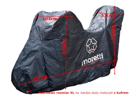 Pokrowiec motocyklowy MORETTI rozmiar XL do motocykli i skuterów z zamontowanym kufrem centralnym