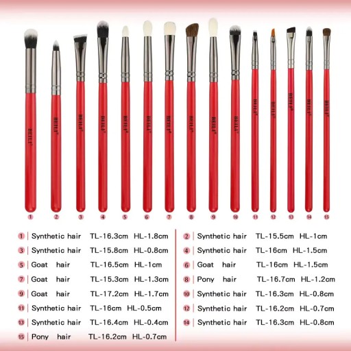 - Wszechstronność: Zestaw zawiera 15 pędzli do różnych funkcji, pozwalając na precyzyjną aplikację cieni, eyelinera i brwi.