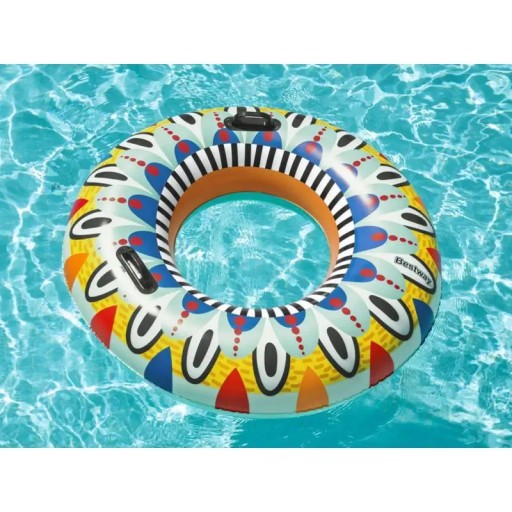 Wybierając się nad wodę warto zabrać ze sobą wszystkie niezbędne akcesoria basenowe, świetnym dodatkiem do wodnego relaksu i zabawy będzie również dmuchane koło do pływania. Koło przeznaczone jest dla dzieci od 12 roku życia oraz wszystkich dorosłych. Jego średnica wynosi 107 cm. Koło jest wygodne i stabilne na wodzie. Wykonany jest z wytrzymałego materiału PVC odpornego na uszkodzenia i działanie promieni słonecznych.