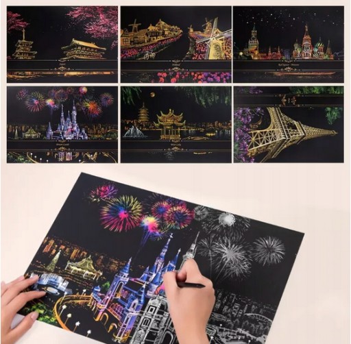 Użyj rysika, by zdrapać kontury i ujawnić piękny obraz.