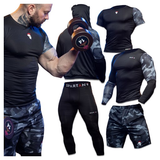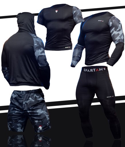 Spartan Thunderstorm Grey&Camo 5w1 to rozwiązanie dla osób, które wymagają od stroju sportowego uniwersalności, wygody i trwałości. W jednym zestawie otrzymujesz pięć elementów: bluzę z kapturem, spodnie kompresyjne, rashguard z długim rękawem, rashguard z krótkim rękawem oraz szorty. Idealny wybór na siłownię, bieganie, crossfit, sporty walki czy jazdę na rowerze.