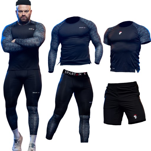 Komplet 4w1 sportowych ubrań kompresyjnych Spartan Black&Blue to kompleksowe rozwiązanie dla aktywnych osób poszukujących wygody, stylu i funkcjonalności podczas treningów. Gotów na intensywną przygodę w siłowni? Poznaj zestaw Spartan Underworld w kolorze Czarny&Niebieski - coś więcej niż zwykłe ubrania treningowe. To zestaw dla prawdziwych poszukiwaczy adrenaliny, którzy chcą pokonać każdą przeszkodę na drodze do doskonałości.
