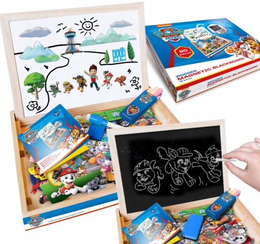 Drewniana Tablica Magnetyczno-Kredowa Psi Patrol to interaktywna i edukacyjna zabawka dla małych fanów psiaków z Psi Patrolu.