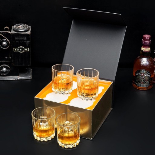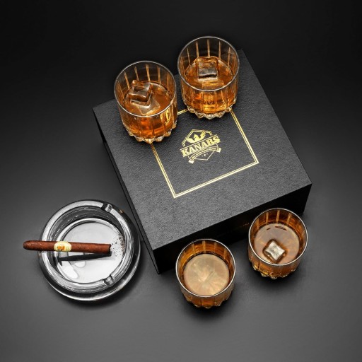 4-częściowy zestaw do whisky do eleganckiej prezentacji napojów i whisky na każdym blacie lub w barze, idealny na specjalne wieczory
