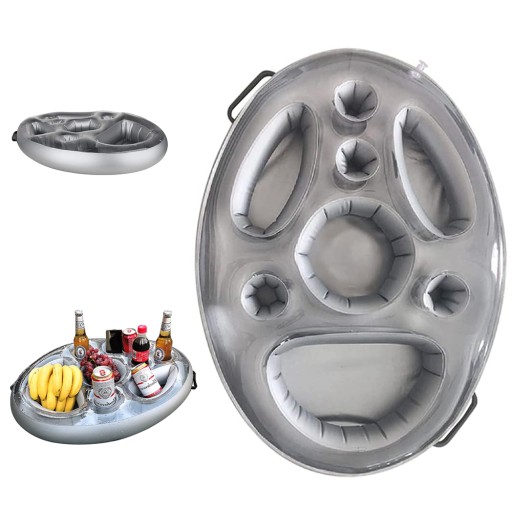НАДУВНОЙ ПЛАВАЮЩИЙ ДЕРЖАТЕЛЬ ДЛЯ НАПИТКОВ БАССЕЙН ДЛЯ НАПИТКОВ С 8 ЛУНКАМИ, СЕРЕБРЯНЫЙ