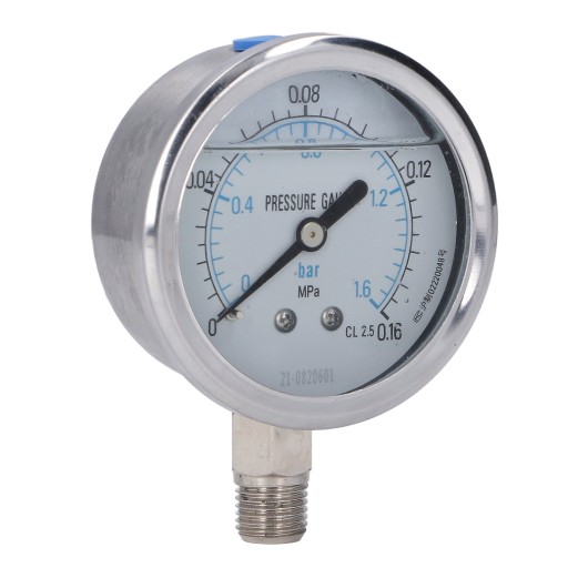 Funkcja:1. OBUDOWA ZE STALI NIERDZEWNEJ ODPORNEJ NA KOROZJĘ: Trwała konstrukcja obudowy ze stali nierdzewnej zapewnia odporność manometru na korozję i przedłuża jego żywotność