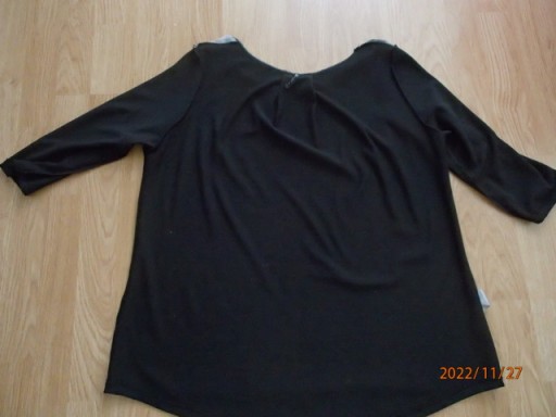 BLUZKA EDISTA PRODUKCJI USA TYŁ W KOLORZE CZARNYM I JEST DŁUŻSZY OD PRZODU. PRZÓD: KWIATY WIELOKOLOROWY. MIERZONA NA PŁASKO: