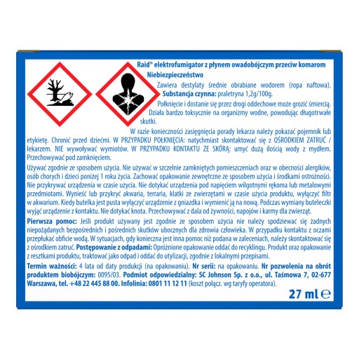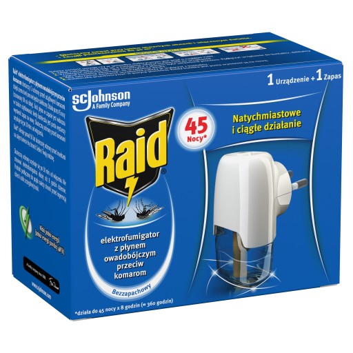 RAID ELEKTROFUMIGATOR + ZAPAS z Płyn przeciwko komarom SC Johnson 27 ml