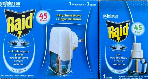 Elektrofumigator owadobójczy na komary 45 nocy, RAID urządzenie + zapas