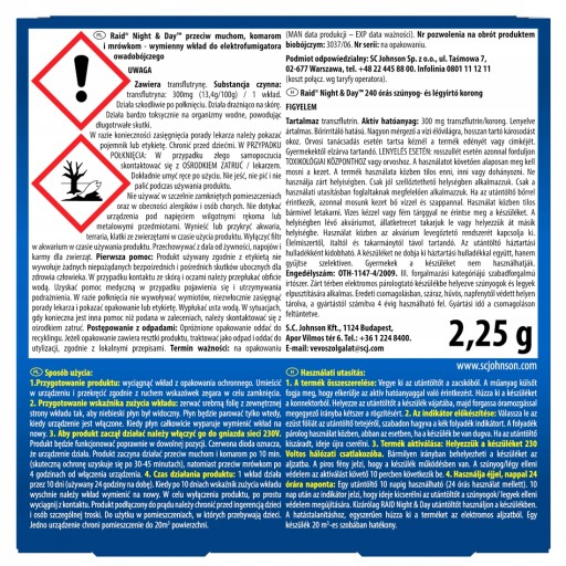 1 x Raid NIGHT & DAY przeciw muchom, komarom i mrówkom – wymienny wkład do elektrofumigatora owadobójczego