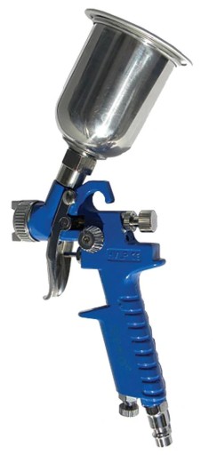 Zasada pracy urządzenia polega na zasysaniu przez sprężone powietrze odpowiedniej ilości emulsji lakierniczej ze zbiorniczka na farbę oraz powstawaniu mgły lakierniczej (drobiny farby i gazu) przy wylocie z dyszy pistoletu. Mgła pokrywa malowaną powierzchnię szczelną i równą warstwą lakieru.
