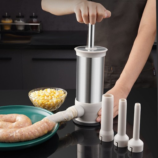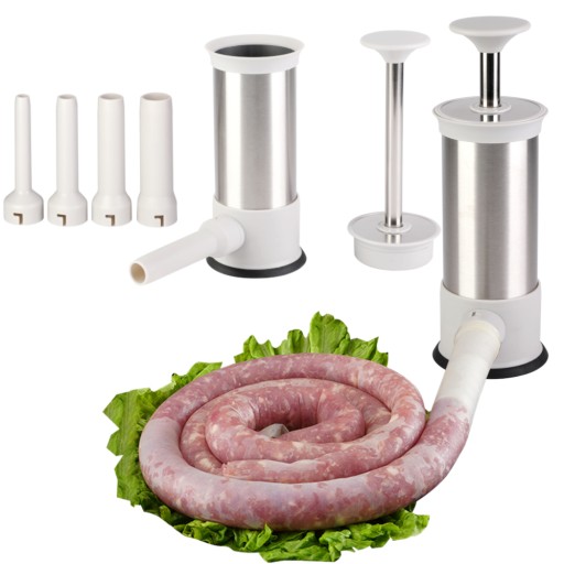 ✅Pionowa nadziewarka do kiełbas o pojemności 2 kg z 4 różnymi lejkami o średnicach 15, 20, 25 i 30 mm to niezwykle przydatny i wszechstronny produkt dla każdego miłośnika kiełbas i domowych wędlin.