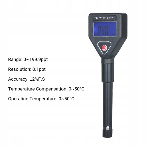 Dzięki wysoce wydajnemu i dokładnemu salinometrowi zakres pomiarowy wynosi 0 ~ 199,9ppt i /- 2% dokładności FS.