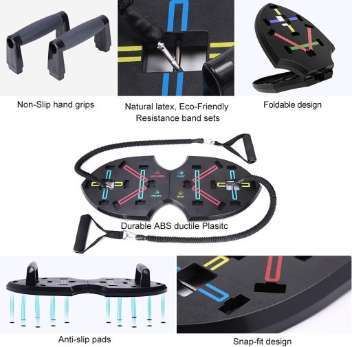 ✅Wielofunkcyjna domowa siłownia: Składana deska do pompek jest oznaczona kolorami dla wielu bardzo skutecznych pozycji pushup. W połączeniu z zestawem taśm oporowych pozwoli Ci uzyskać trening siłowy, treningi oporowe i ćwiczenia cardio w zaciszu własnego domu! Prezent dla chłopaka.