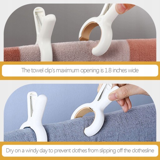 Klipsy do urządzeń są proste i wygodne w użyciu, promują i lekkie do użytku na zewnątrz. Klipsy do ręczników mogą być używane do przytrzymywania nieporęcznych czynności, takich jak kołdry, koce, prześcieradła i inne ubrania do suszenia w wietrzne dni i dalej zsuwaniu się ze sznurka.