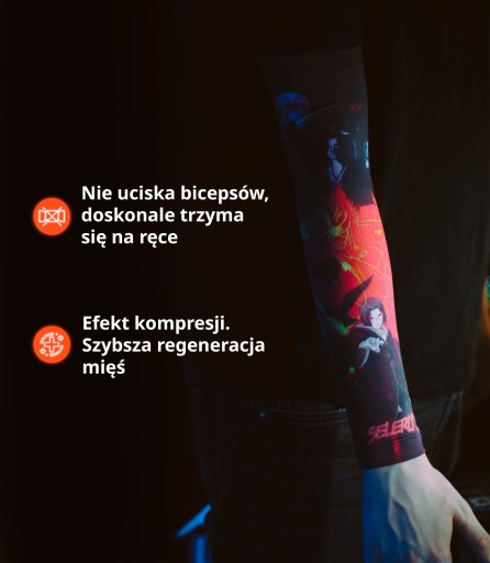 Rękaw jest nie tylko praktyczny, ale także stylowy – jego innowacyjny projekt z funkcją charakterystyczną dla każdej gry. Idealny dla każdego, kto ceni sobie komfort w czasie pracy dostępnym przed ekranem.