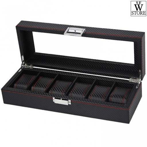 Najważniejsze informacje: - wysokiej jakości wykonanie; - niewielkie rozmiary, ale bardzo funkcjonalna - pozwala wygodnie przechować 6 zegarków; - posiada solidny metalowy zamek; - zapewni najwyższą ochronę dla Twoich zegarków; - wykonana z eleganckiego materiału przypominającego carbon; - środek wypełniony poduszeczkami w materiale obicia: - przezroczyste okienko - pozwalające przeglądać zawartość szkatułki.