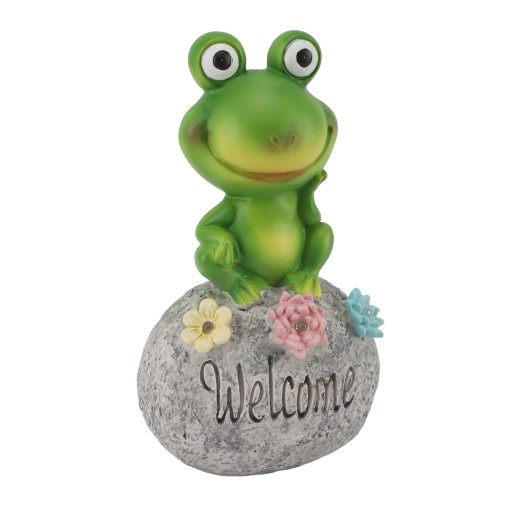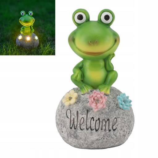 Posąg żaby z lampkami słonecznymi Żywica Wystrój ogrodu na zewnątrz Figurka żaby na patio Podwórko Trawnik Ozdoba basenowa Prezent na parapetówkę