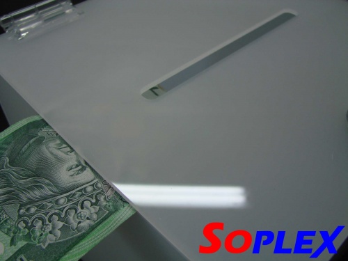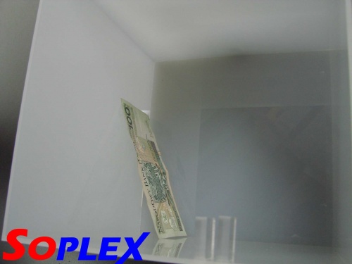 Mleczna delikatnie prześwitująca plexi nadaje niespotykany efekt- widać, że coś w niej się znajduje, ale nie można dokładnie zobaczyć co...